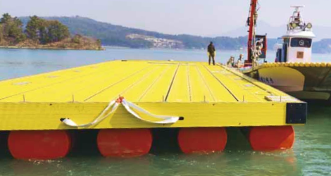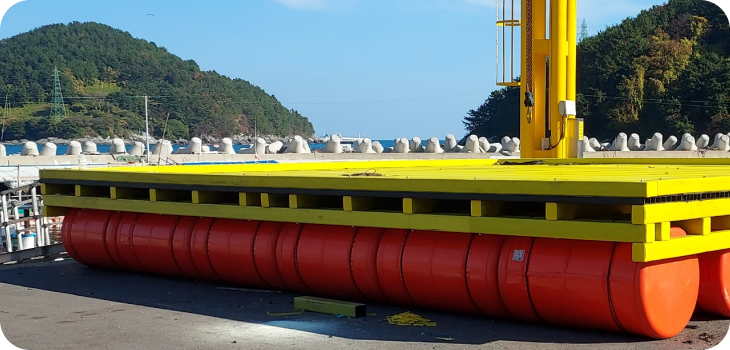 해양, 호수 등 물 위에서 사용하고자 만든 넓고 평평한 부유식 구조물