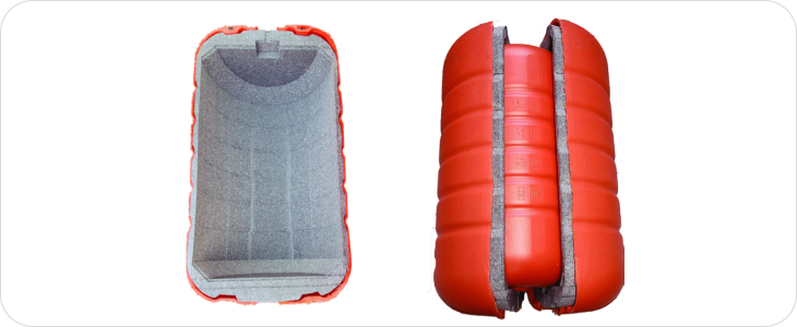 - EPP 폼의 완충재 역할로 내피 보호, 외피 충격 완화 작용으로 내구성 향상